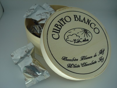 CUBITO BLANCO NUEZ BIO: Dried fig of “Calabacita” variety, naturally dried on the tree and free of additives or preservatives. A cut is made in the fig to put a piece of walnut inside. Covered with a thin layer of maximum-quality white chocolate.